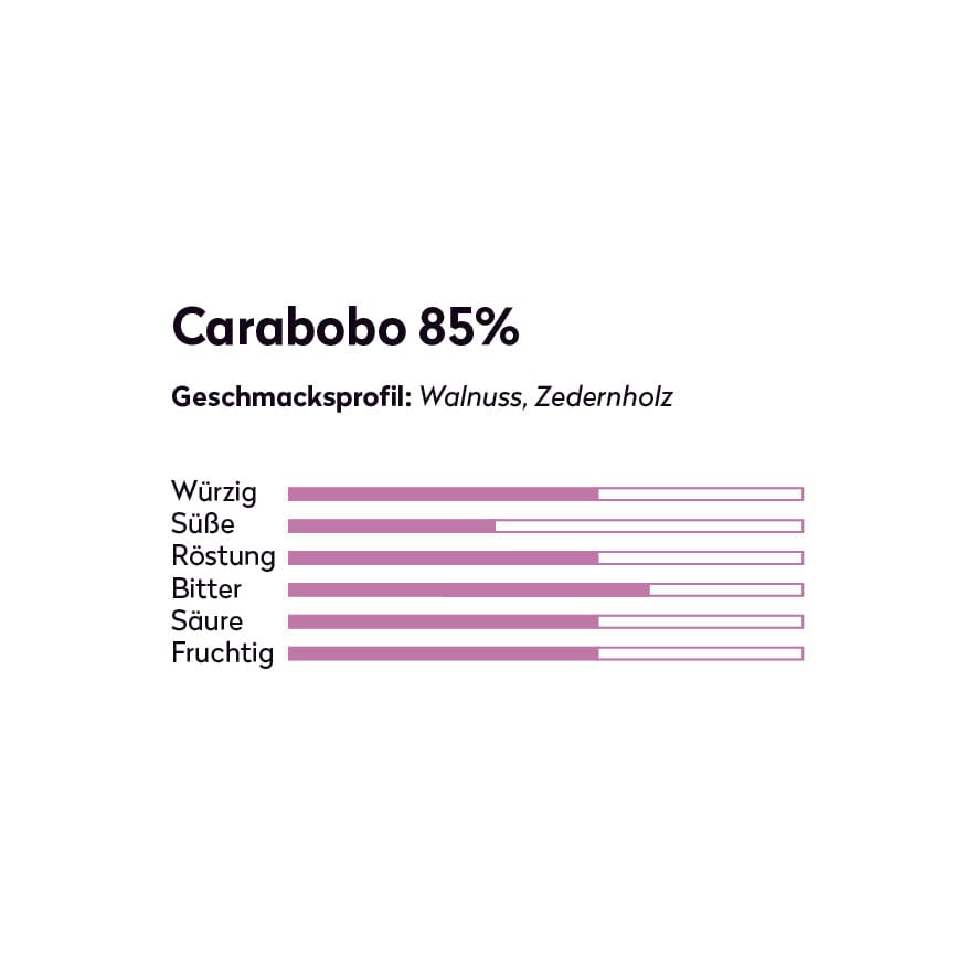 Unsere Carabobo 85% Kakaoanteil spiegelt die reiche Kakaotradtion Venezuelas wieder. Venezuela gilt als Heimat einiger der besten und seltensten Kakaosorten der Welt. Die venezolanische Kakaokultur hat sich über Jahrhunderte entwickelt und wird bis heute von leidenschaftlichen Bauern und engagierten Familien weitergeführt. Diese Tradition und Expertise sind es, die den Kakao aus Venezuela zu einem weltweit geschätzten Produkt machen. Besonders der Puerto Cabello-Kakao, der im Norden des Landes angebaut wird, spiegelt die reiche Geschichte und die fortschrittlichen Methoden wider, die den venezolanischen Kakao so besonders machen.