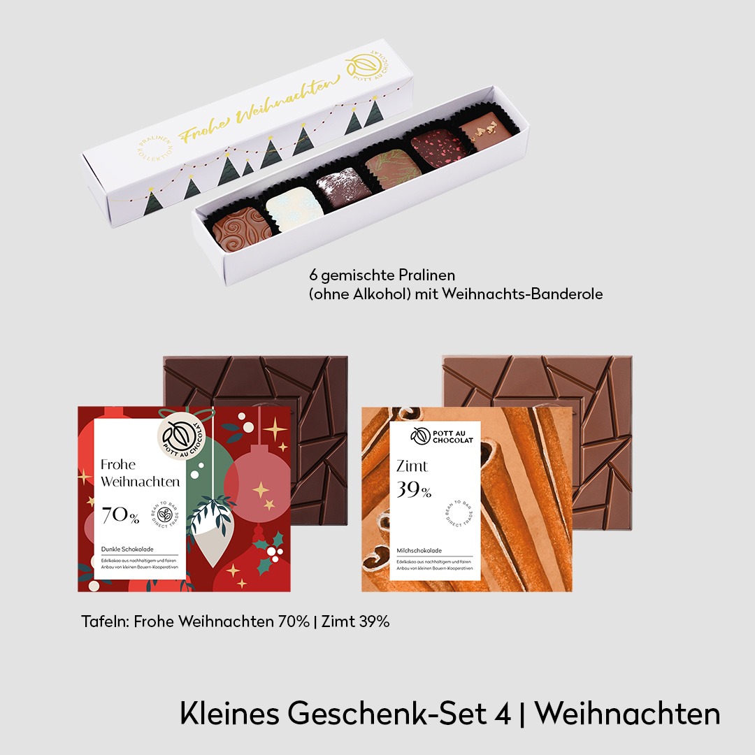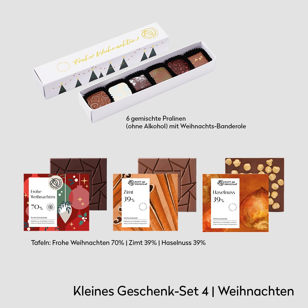 Ob als edles Mitbringsel, als persönlicher Gruß oder als stilvolles Firmengeschenk: Dieses Set sagt „Frohe Weihnachten“ auf die schönste Art – mit echter Schokolade aus unserer Dortmunder Manufaktur.