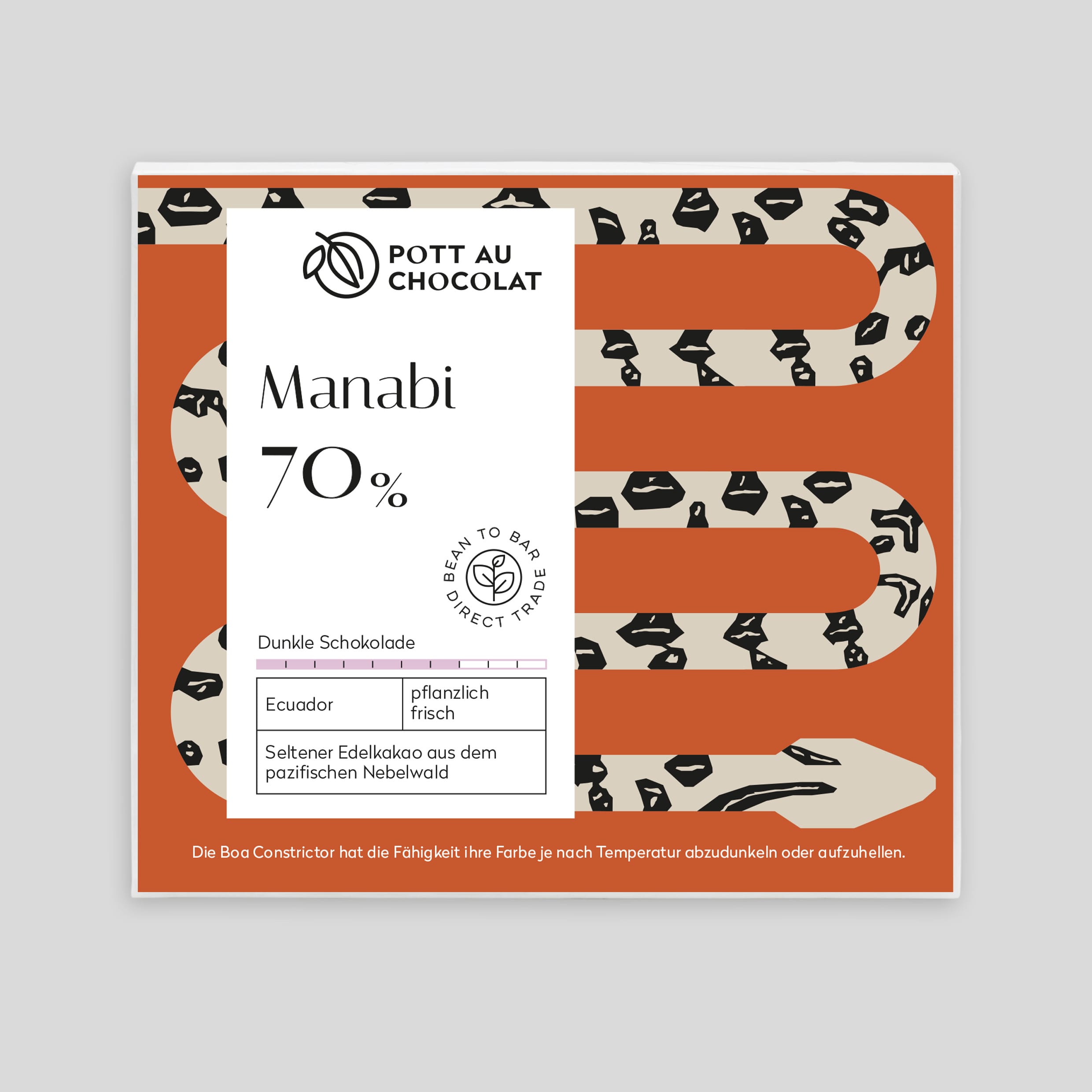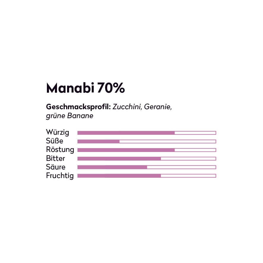 Manabi 70% - Grüne Noten von Zucchini, Geranie und grüner Banane machen diesen seltenen Arriba Nacional Kakao aus dem pazifischen Nebelwald im Norden Ecuadors zu etwas ganz Besonderem. Nachhaltig und direkt gehandelt. From Bean to Bar.
