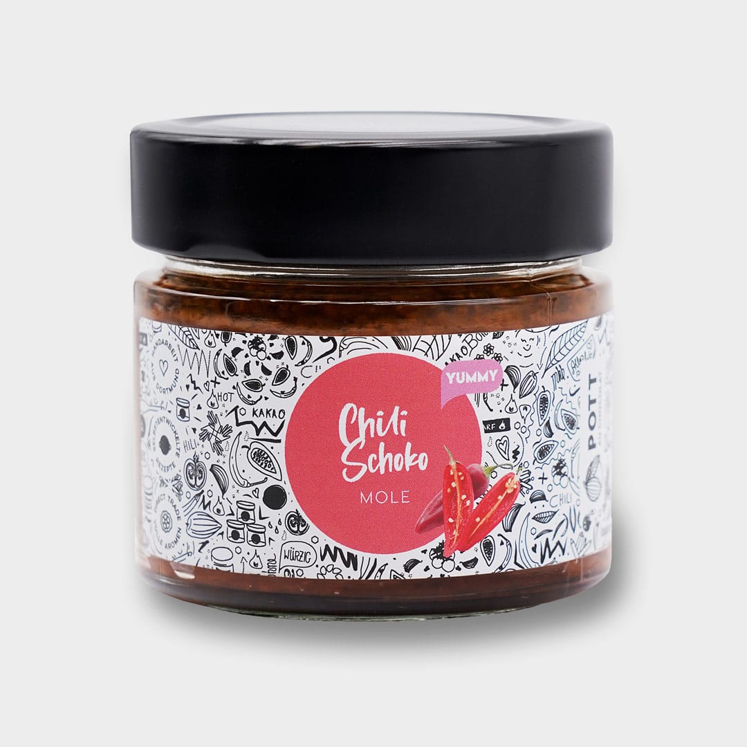 Unsere Mole ist die ideale Sauce für alle, die den intensiven Geschmack von Schokolade und Chili lieben, ohne sich von übermäßiger Schärfe überwältigen zu lassen. Sie ist vielseitig einsetzbar, ob zu gegrilltem Fleisch, Gemüse oder sogar als cremiger Aufstrich in Kombination mit Frischkäse. Die konzentrierte Sauce lässt sich mit Gemüsebrühe einfach aufkochen und je nach Vorliebe anpassen.