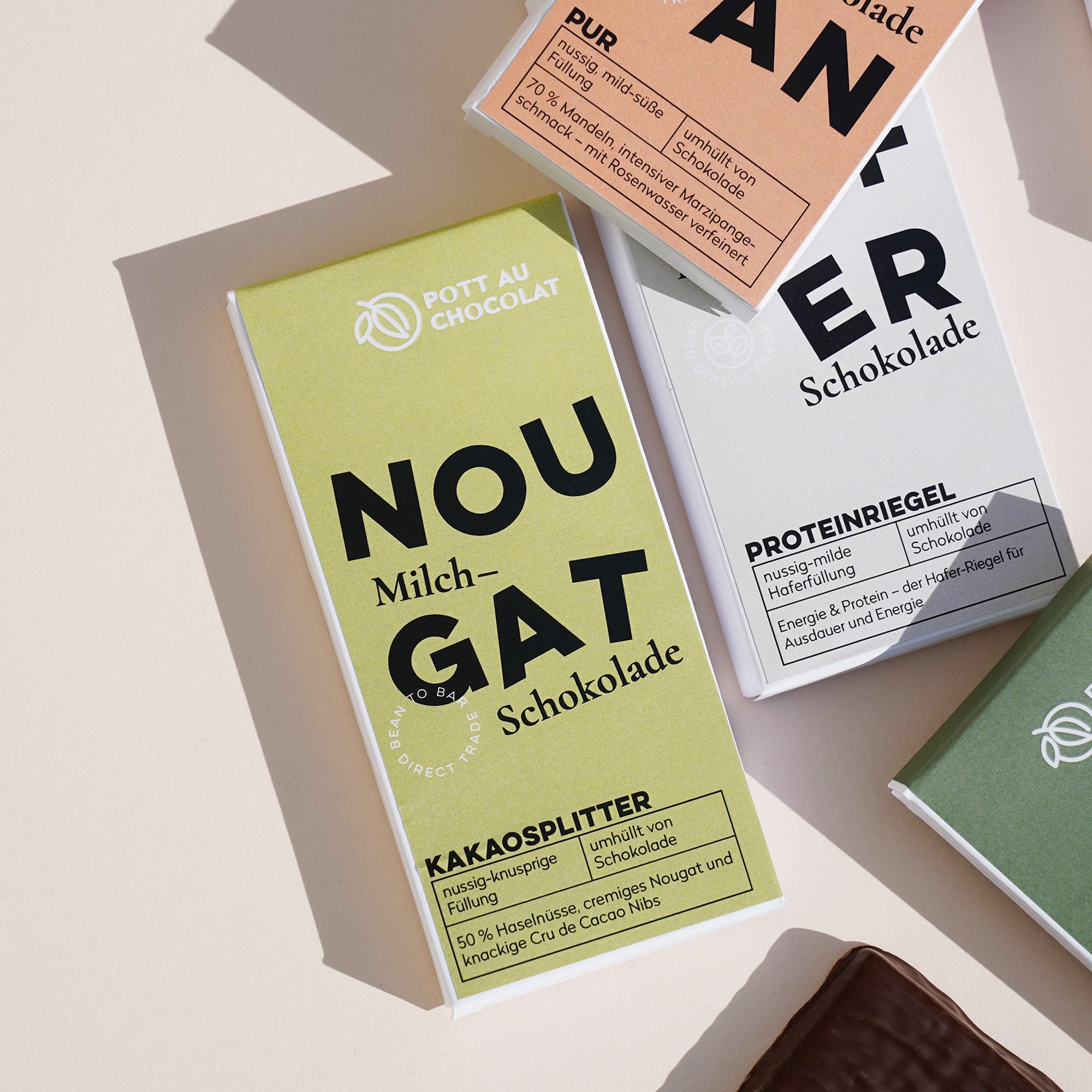 Pflanzlicher Nougat und laktosehaltige Schokolade