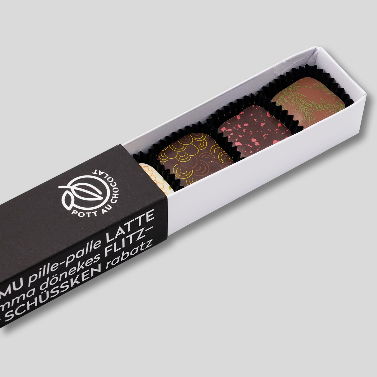 Unsere Pralinen Stange Pott-Edition (10er) ist in fünf unterschiedlichen Varianten erhältlich, die alle den einzigartigen Charakter des Potts widerspiegeln. Wähle die Variante, die zu dir und deinen Liebsten passt, und entdecke, wie vielfältig der Pott-Genuss sein kann: