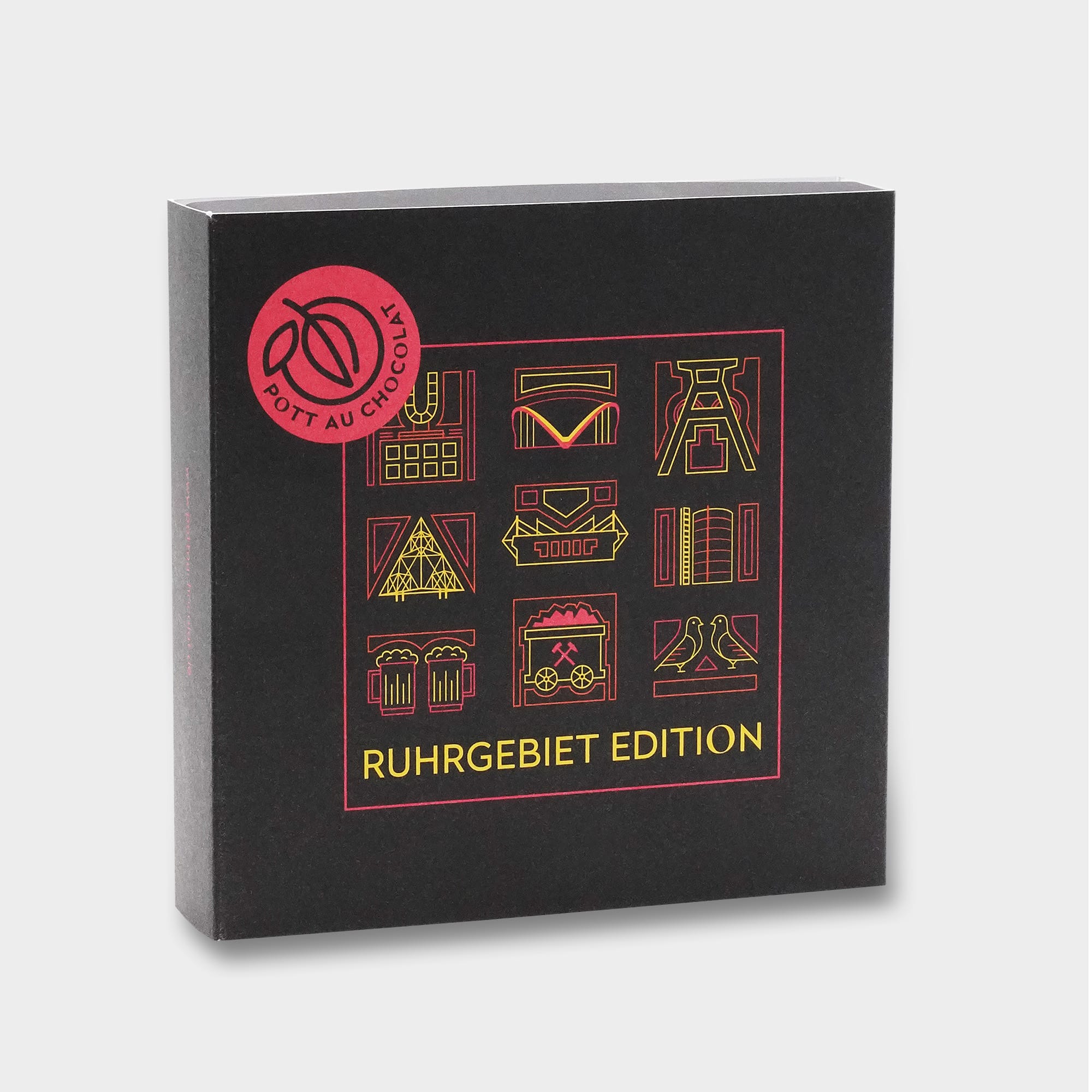 Entdecke das Ruhrgebiet von seiner süßen Seite! Unsere exklusive Ruhrgebiets Edition vereint die Kultur und Geschichte des Ruhrpotts mit köstlichen Schokoladen-Ganache-Pralinen. Diese besondere Kollektion besteht aus neun großen Schokomousse-Pralinen, die nicht nur geschmacklich überzeugen, sondern auch mit liebevoll gestalteten Motiven aus der Region bedruckt sind. Für Liebhaber des Ruhrgebiets und Feinschmecker gleichermaßen ist diese Pralinen-Edition ein wahres Highlight. Sie verbindet die raue Schönheit des industriellen Erbes mit der zarten, cremigen Textur feinster Schokolade – ein Genuss für alle Sinne.