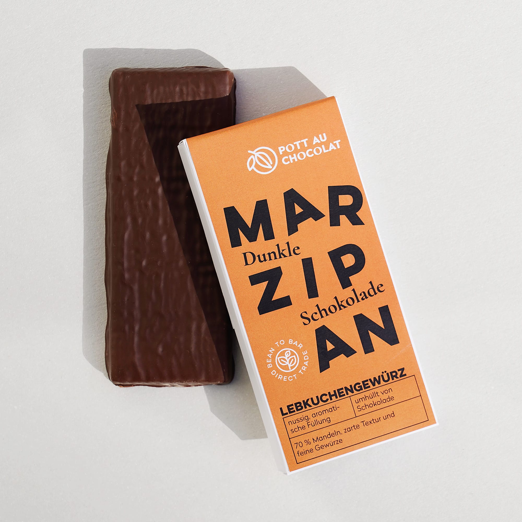 Lebkuchen und Marzipan – eine harmonische Verbindung: Die Lebkuchengewürze verleihen dem Marzipan eine warme, winterliche Note, die an gemütliche Abende vor dem Kamin erinnert. Der dezente Hauch von Gewürzen hebt den süßlich-nussigen Charakter des Marzipans hervor und ergänzt ihn mit würzigen, leicht herben Akzenten. Diese Kombination macht unseren Schoko-Riegel zu einem besonders raffinierten Genuss, der die Sinne anspricht und auf köstliche Weise Wärme und Geborgenheit vermittelt.