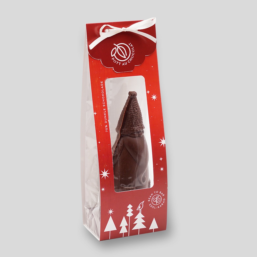Unsere Schokoladenfiguren werden mit viel Liebe zum Detail hergestellt. Vom freundlich lächelnden Gesicht bis zur präzise geformten Zipfelmütze – jeder Schoko-Weihnachtsmann ist ein kleines Kunstwerk. Hinzu kommt die hochwertige Schokolade, die für einen zartschmelzenden Genuss sorgt. Ob du ihn selbst vernascht oder als Schokoladengeschenk verschenkst – der Schoko-Weihnachtsmann ist immer eine gute Wahl.