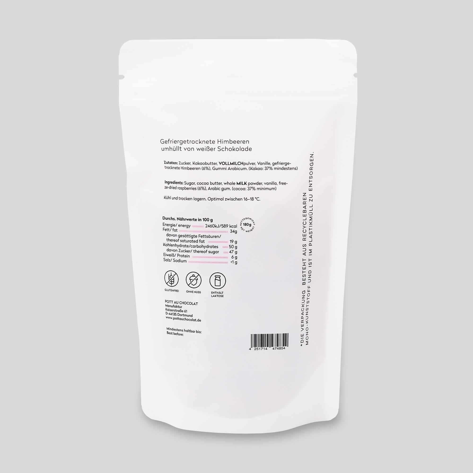 Die Kombination aus fruchtig-säuerlichen Himbeeren und süßer weißer Schokolade bietet ein ausgewogenes Geschmackserlebnis. Die natürliche Säure der Früchte wird durch die Milde der weißen Schokolade perfekt ergänzt, wodurch eine leckere Kombination entsteht, die du immer wieder genießen möchtest. Egal, ob als kleiner Snack zwischendurch oder als besondere Zugabe zu deinem Dessert.