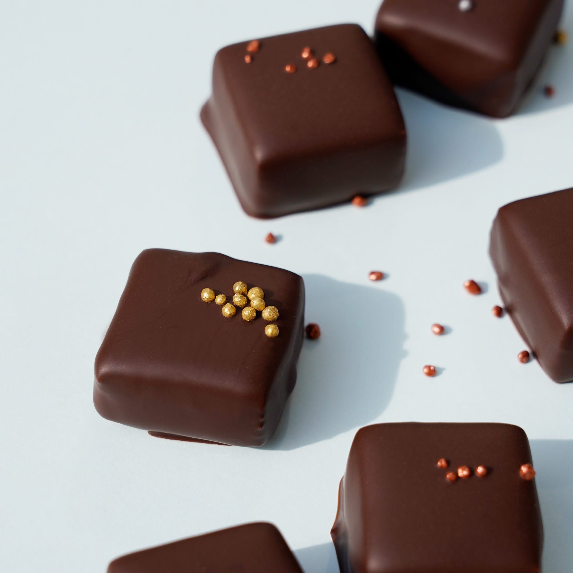 Das Dekor der Pralinen enthält Lebensmittelfarben. Diese können die Aktivität & Aufmerksamkeit bei Kindern beeinträchtigen.