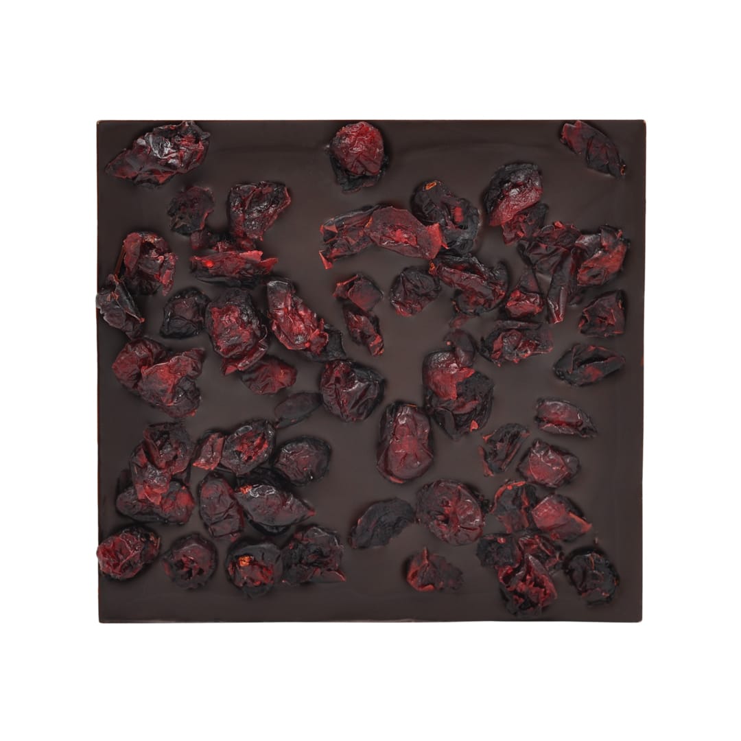 Die Kombination von fruchtigen Beeren und kräftigem Kakao bringt eine wunderbare Balance in die Tafel: Die dunkle Schokolade liefert die intensive Tiefe, während die Cranberries mit ihrer leichten Süße und Säure den Gaumen erfrischen und für Abwechslung sorgen.