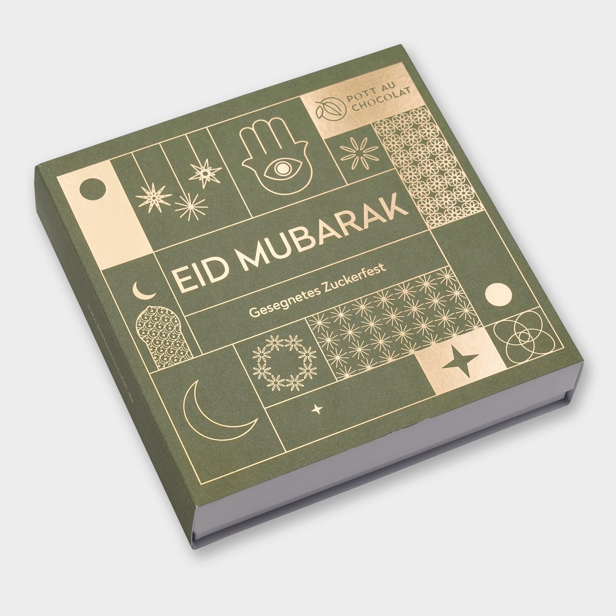 Das perfekte Geschenk im Ramadan oder zum Zuckerfest - unsere exquisiten, handgemachten Pralinen in einer stilvollen goldgeprägten Eid Mubarak Geschenkbox. Die Pralinen vereinen feinste Zutaten mit orientalischen Aromen: Sesam & Kadayif, fruchtiger Granatapfel, aromatische Walnuss und süße Feige. Perfekt als festliche Aufmerksamkeit für Familie und Freunde oder zum eigenen Genuss.